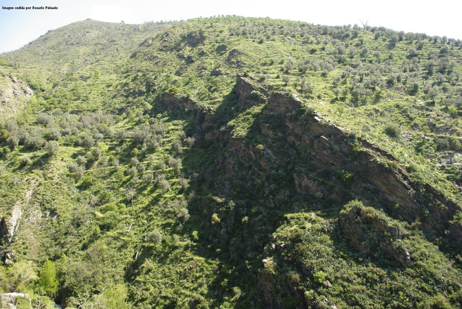 Le terrain est très accidenté, et nous devons aller lentement. Nous sommes situés au plus haut point de la trajectoire de leur voyage à travers la vallée Lecrin. Par le Nigüelas nous sommes cinq miles de descente douce que dans certains endroits est très raide. En bas, nous avons vu la vallée de la Torrente, qui est orientée vers le chemin. Il ya des masses Carrasco forêt de pins et quelques exemplaires de châtaigniers et de chênes. Les pentes sont couvertes de buissons de romarin, retamales, la colonne vertébrale et le thym, entre autres. Plus bas, les montagnes sont plantés d'amandiers.